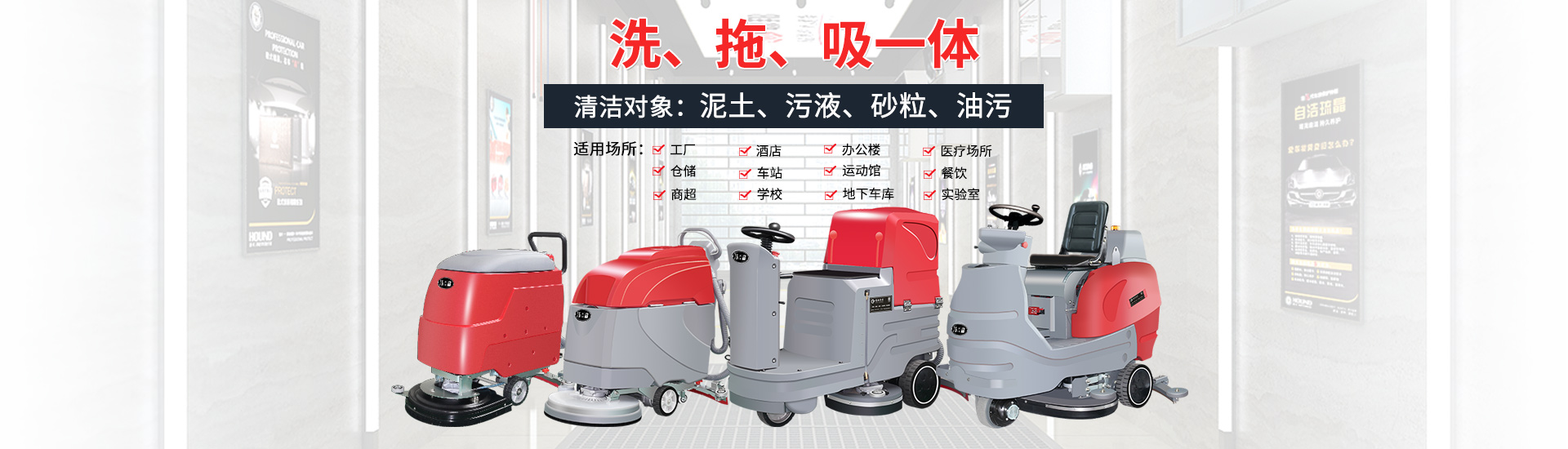 擁有先進的高品質洗地機,掃地機,工業(yè)吸塵器,高壓沖洗機等上百種產品